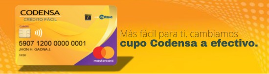 Cambiamos el cupo de su tarjeta Codensa por Efectivo.